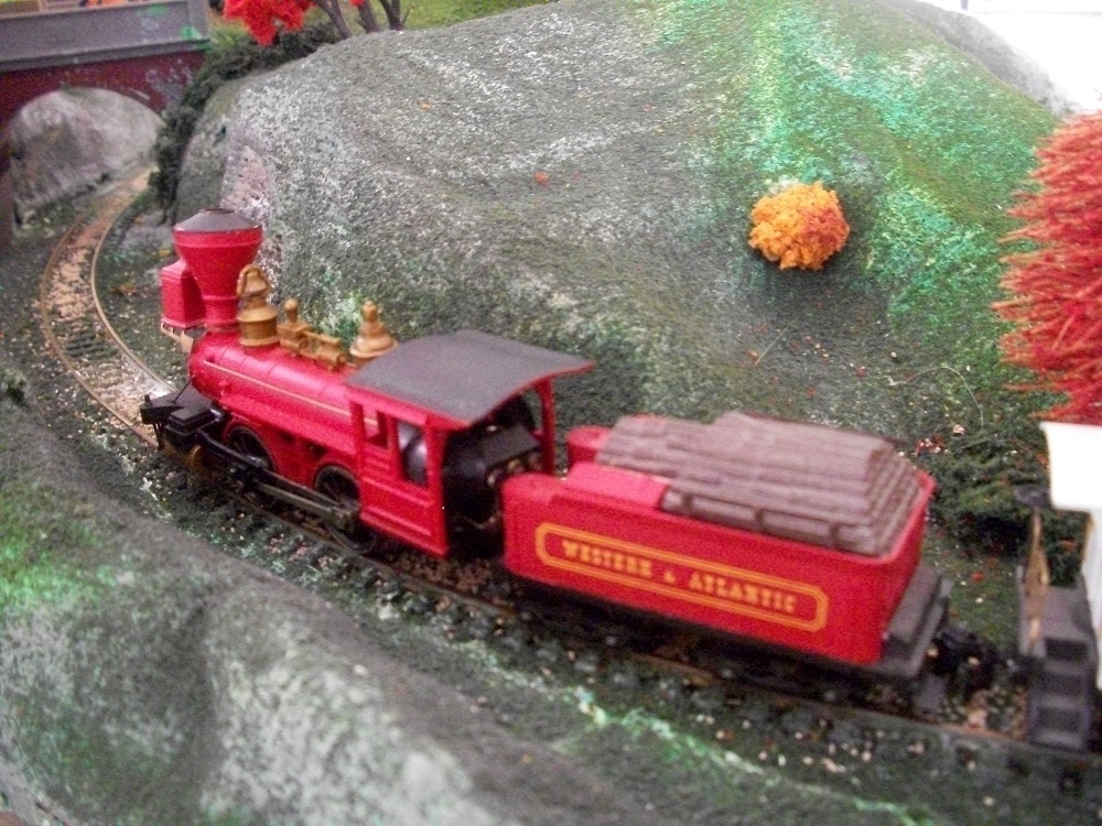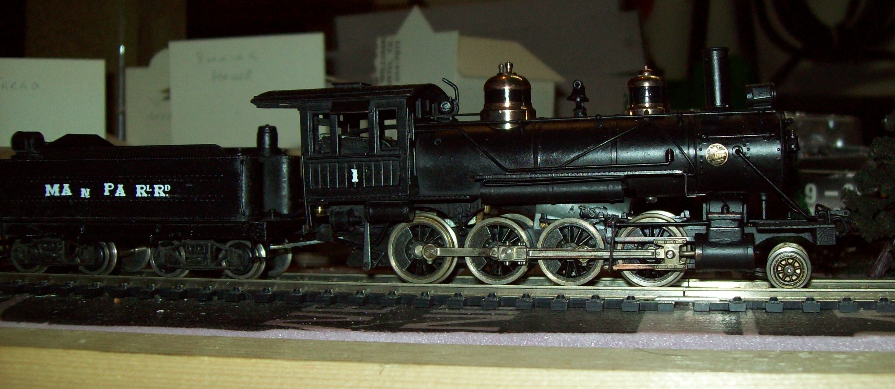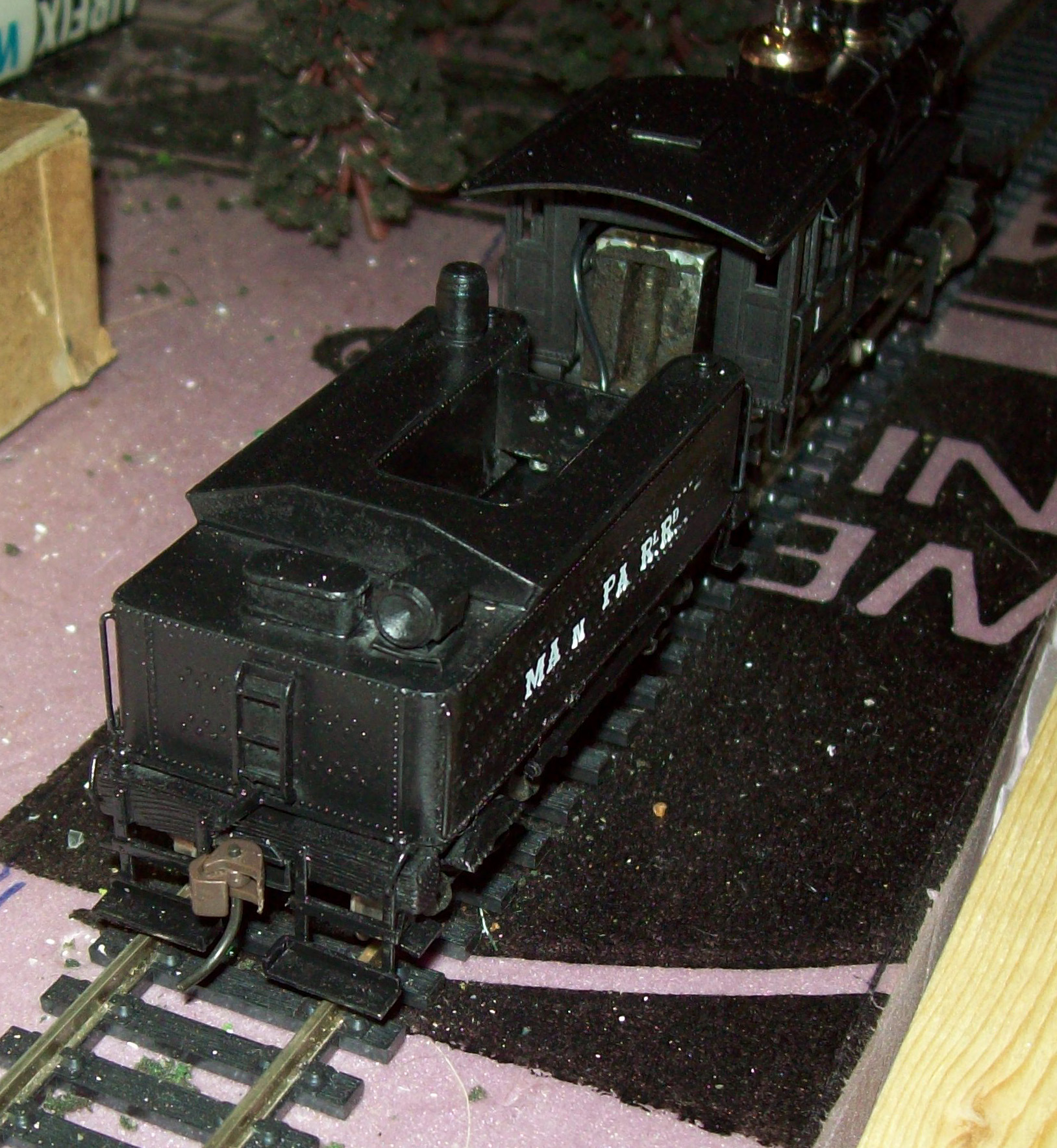 An AHM 2-4-0 (NOT a Mikado, Zelda) rounds the bend on the Two Seasons layout. Thanks to Old Timer, I now have a plan to rip all this up and build something much better in the same allotted space.