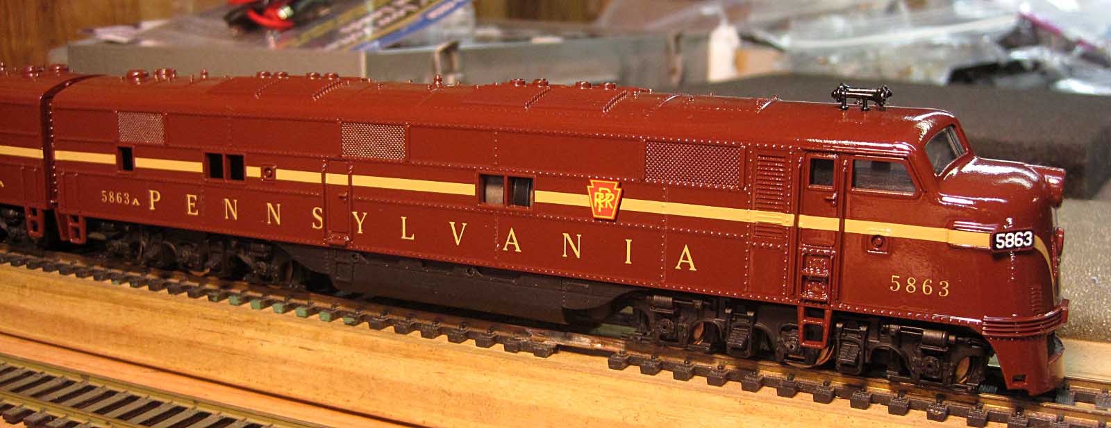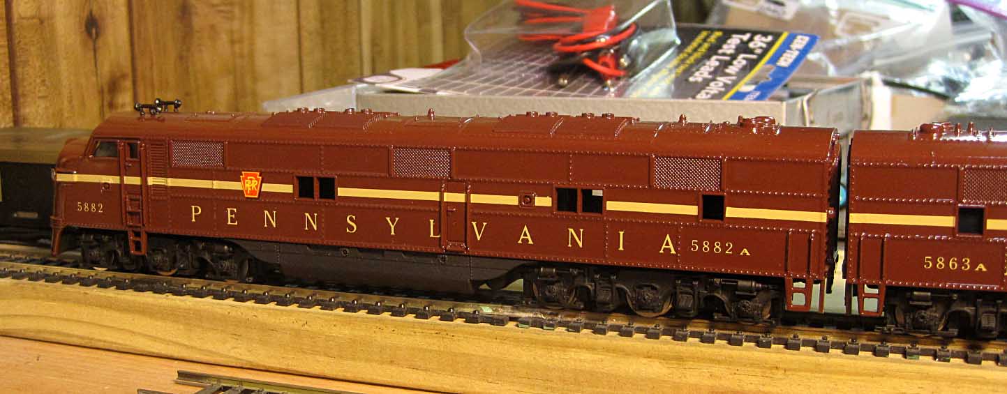 This LOTW is for raysouthernpac. Ray, you sent me a bag of Model Power PRR E7 parts a while back and I wanted you to see that I finally did something with them. Amazingly, a complete powered unit was in there, plus a dummy. I kept them PRR but since the shells were a little rough, repainted and decaled in the gold stripe scheme. Thanks again!