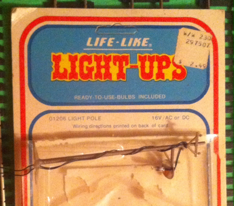 Life-Like "Pole Lights". I placed 3 of these around the Cabinet Factory in BOTW. A few of these were dim right out of the blister pack. Thankfully, I test all bulbs b4 mounting. I have 106 light ups working on my layout now...
