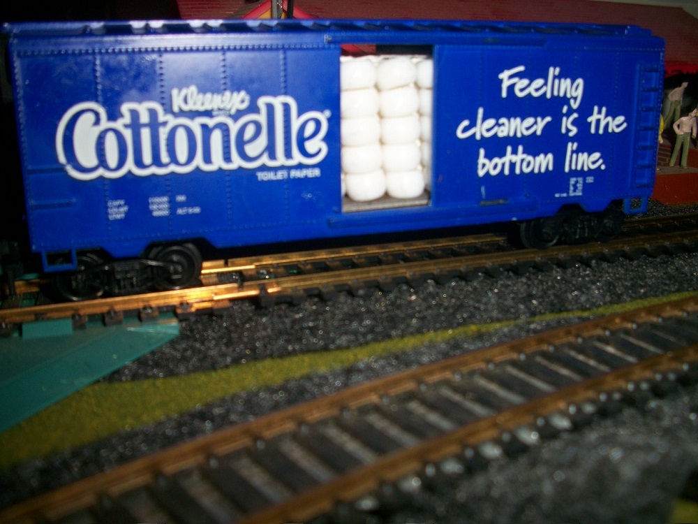 Well, I got a bunch of box cars missing doors, and this Cottonelle is one example.