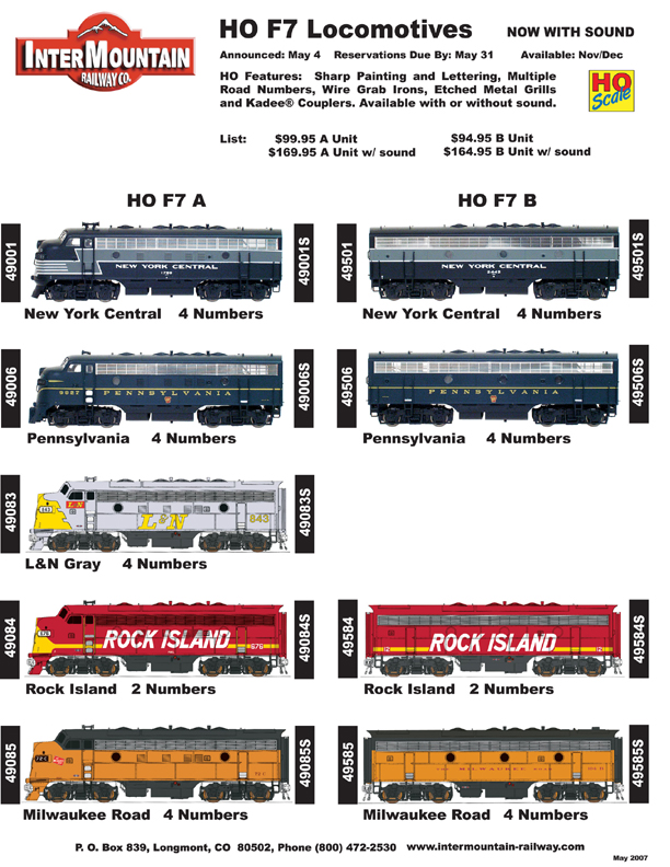 Nice looking ROCK ISLAND set of F's in this new May 2007 InterMountain announcement...