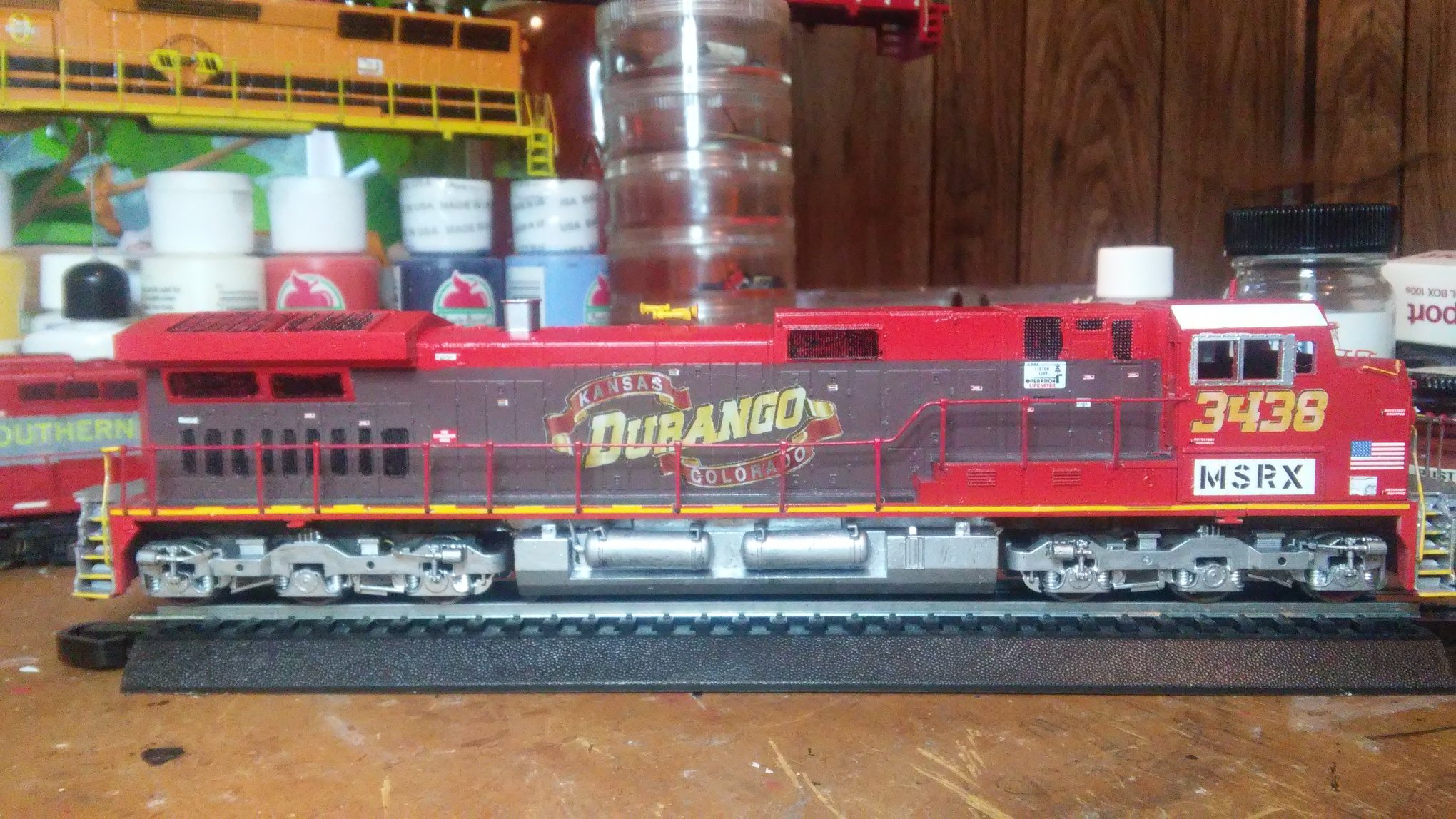 Ive been on a Rock Island type of mood as of late. This is a proto 2K GP-18 that I installed DCC and a very bright LED on. Gonna have to get back in and dim it a little.