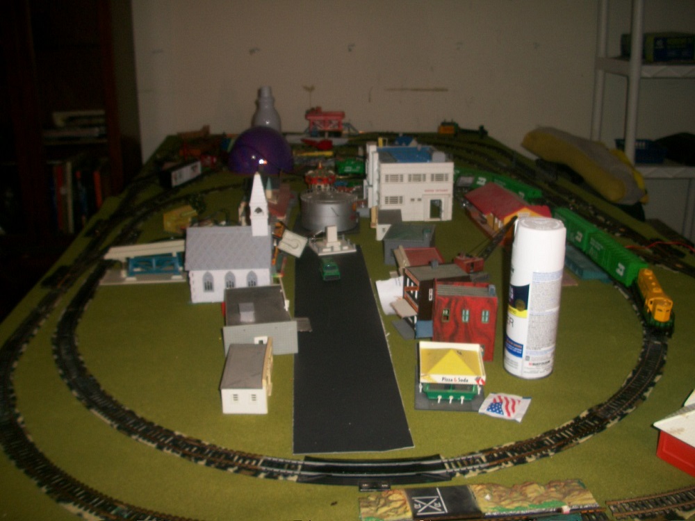 Having received his Majesty's approval of road bed, the Tyco Expander Layout has progressed to this: