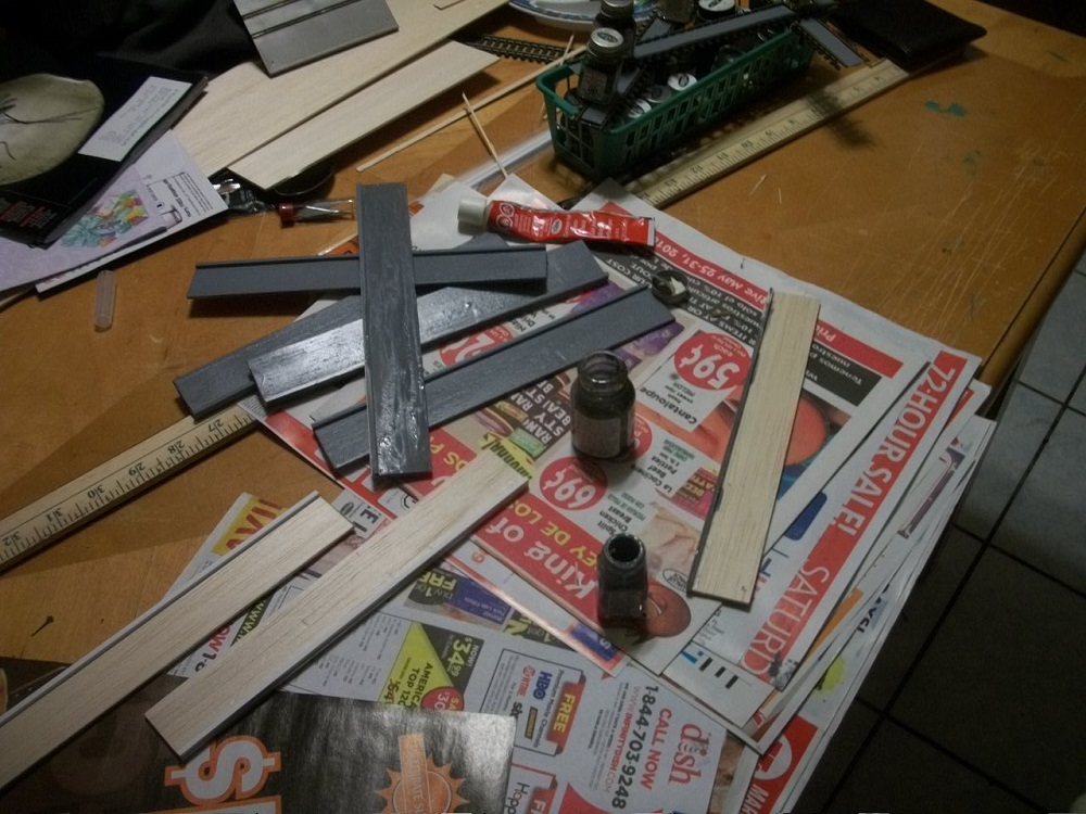 The Tyco Strap Hanger set is really cool, but the tiny oval of track is so small as to make the set look like an egg beater in motion. Using balsa strips and some brass track I am fashioning a longer straightaway.