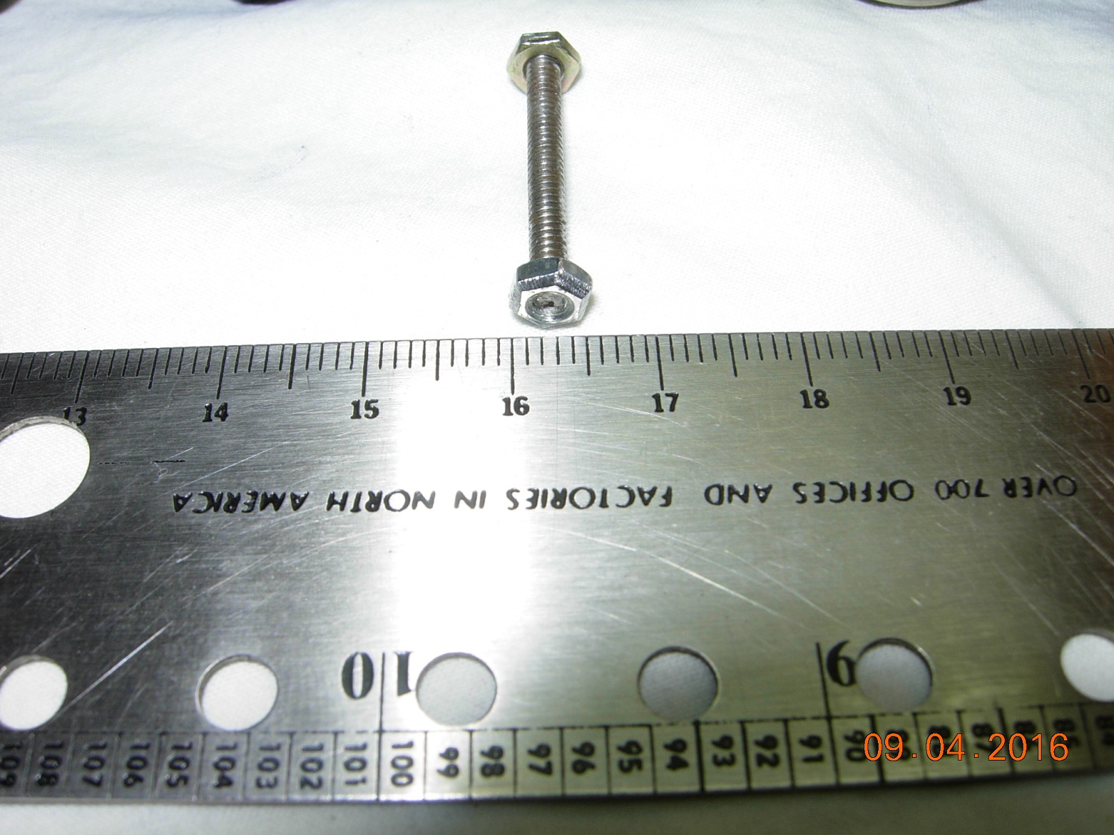 The nuts are 7/32" or 5 mm. The threaded bit is just over an inch, which makes the fit a tad tight. One inch or a hair less would be OK. I bevelled the edges a bit, as well. Probably Ok without it. I never tried before doing it. Evan PS I'm not a metrified Canuck. The shots with the inch scale just sucked, so I deleted them and used the metrc ones, which sucked not.