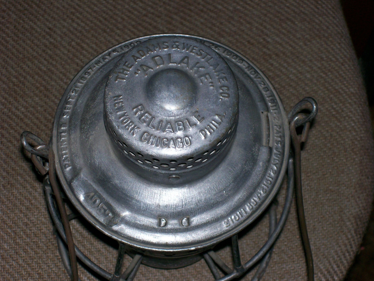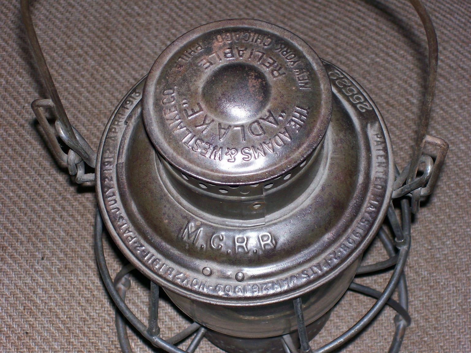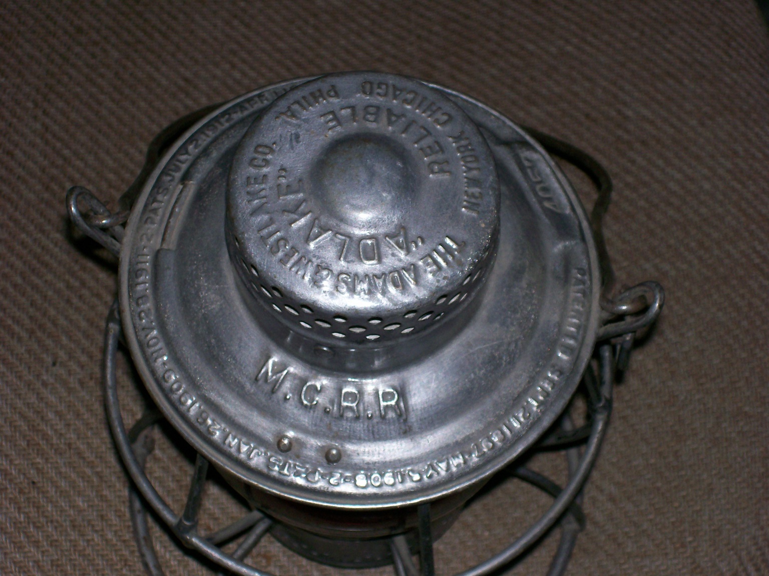 I will be posting photos of some of my collection here. I will start off with an old Adlake lantern made for the Michigan Central. As near as I can tell it has original finish that someone has buffed up a little. It even has "MCRR" embossed red globe.