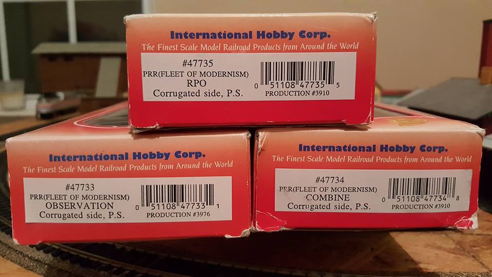 Selling this IHC Pennsylvania Railroad passenger car set. They are new in the box, but one box on the side has small damage. This is a nice set and I would keep it if I gave a damn about the Pennsy Railroad, but I don't. $50 seems fair.