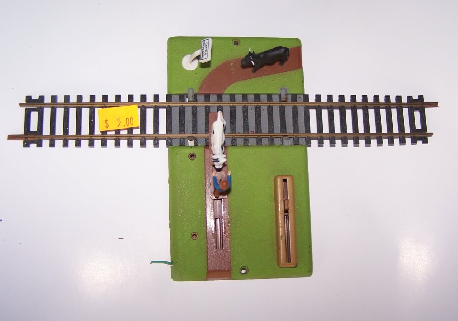 This weeks's AOTW is something special, the Bachmann Cow crossing. Similar to the Bachmann disaaster crossing with towed automobile, I found this loose at a vendor for only $5 , could not pass that up! Wires have been snipped, will need to put some back, see if this thing even works. First one of these I'd run across. Even as a display/shelf piece, it's a bit of Bachmann operational arcania. I lke it!