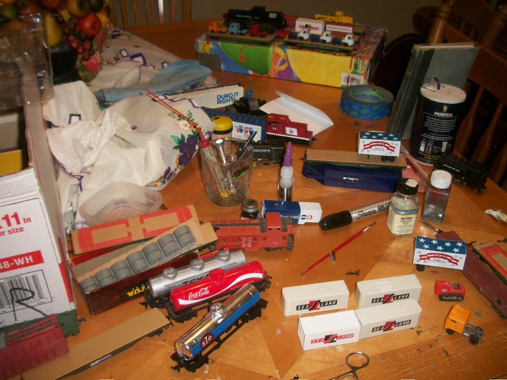 Banging out the pieces, new doors, hand rails, couplers, paint jobs...