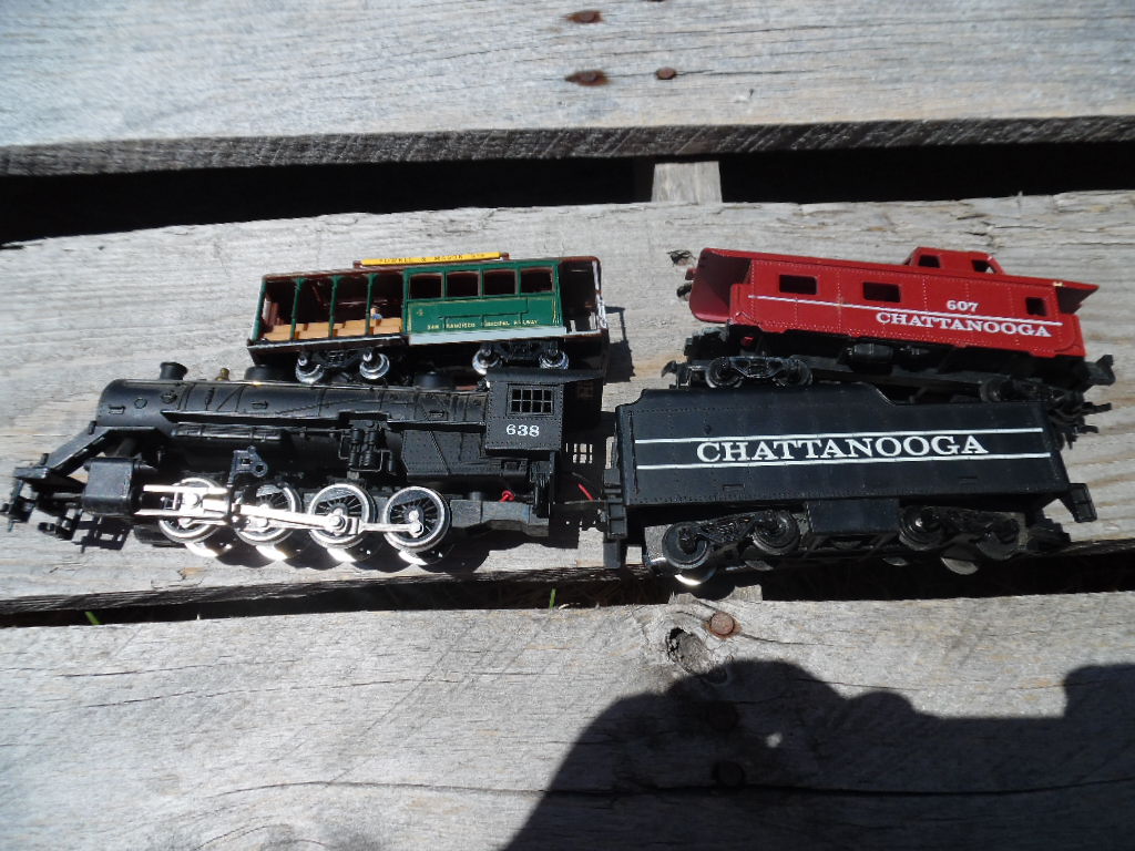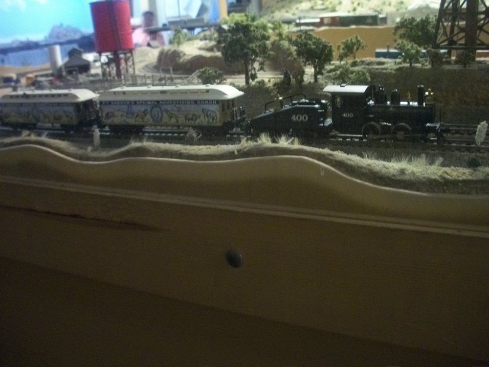 A NOS AHM switcher I picked up recently. Pulling a trio of PT Barnum coaches across the Chihauhuan desert. For a while I couldn't find any of the PT Barnum's for less than $40 on Ebay, but the price dropped to $10 a whack, so I snagged two more to make a trifecta.