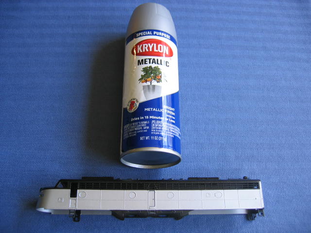 I finally found an Aluminum paint that will work.... I actually use that can to apply it instead of my airbrush. The paint dries in 15 minutes. Within 24hrs, one can use the blue 3M painters tape on it, without pulling off the paint and ruining the finish on the shell. The E8 is a NJ Transit one is an Life-Like engine I got for $10 recently. More to come on tthat when I am finished re-painting it.....