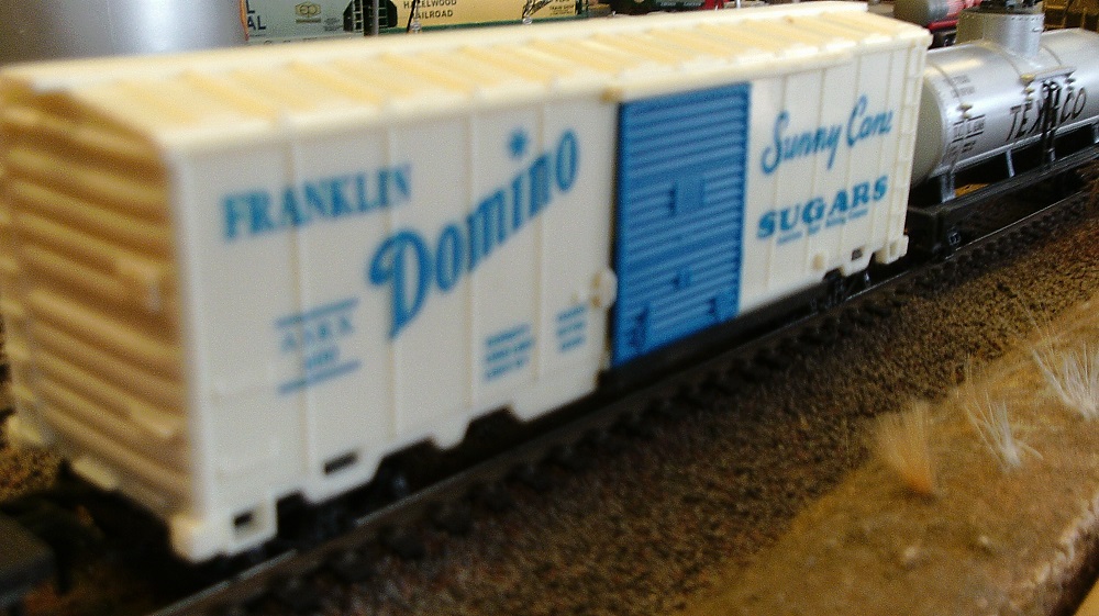 When I was about 11, Mom took me out to the Caldor's in Easthampton, which seemed like a jillion miles away, because they were having a sale on model trains. What I got for my $4 was an AHM Domino Box Car. Cleaning out the attack when I was 19, I gave it and everything else I had collected over the years to a hobby shop in New Hampshire. I have not been able to locate the AHM version since, but have picked up a few Model Power versions which come quite close. I did see one AHM Domino at a train show about a 15 years ago, but at $40!