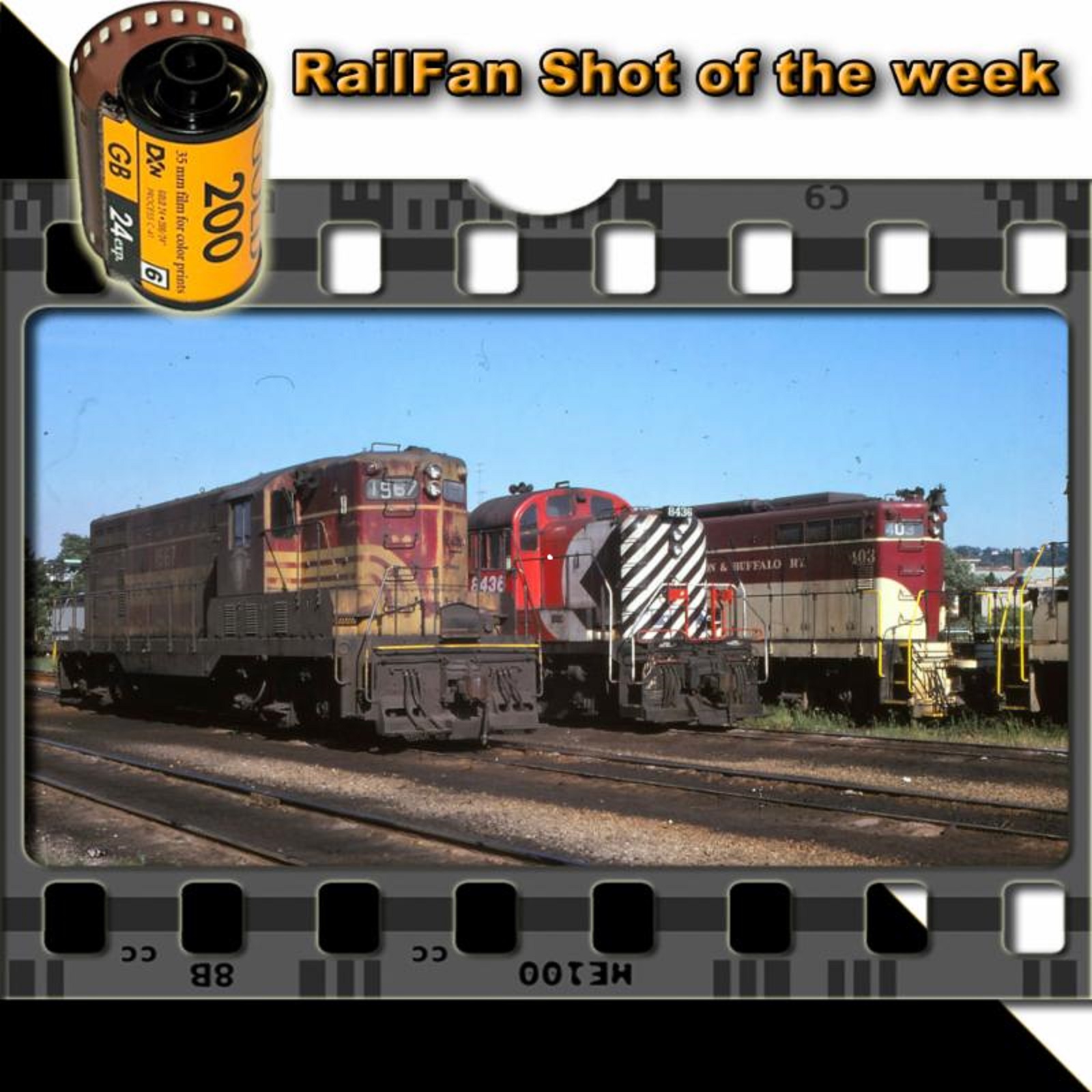 Boston and Maine 1567 GP-7 CP Rail RS-3 8436 and TH&B GP-9 403 bask in Aberdeen Yard on a sunny July 1974 day. Photographer unknown, From the Aberdeen Car Shops Collection. From the weekly Georges Trains E-flyer