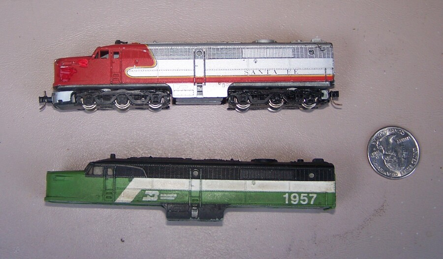 quote: quote:Starting off small, I found these two at the local show Saturday. I like the BN shell better, it's missing the trucks, I bought both of them cheaply to combine them into one working engine ( hopefully ).