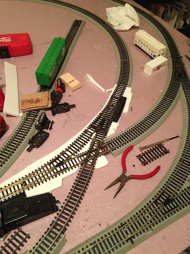 So I've swapped out the Tyco switch on the left side of the diamond for an Atlas Snap switch. My passenger test train (Tyco Combine and LL Coach and full dome) wasn't liking the short throw rails. Ironically, the other tyco switch on the other leg is fine.