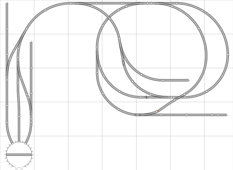 My new layout is 42"X48". The track plan is similar to the one above. I got some 15"R curves in my latest haul (mainly Tyco Trusteel with some brass). The layout is a mix of brass, Trusteel and Nickel Silver. Minumum radius is 15", but my Tycos are comfortable with it. The Super 630 and 4-6-0 may be picky, we'll see.