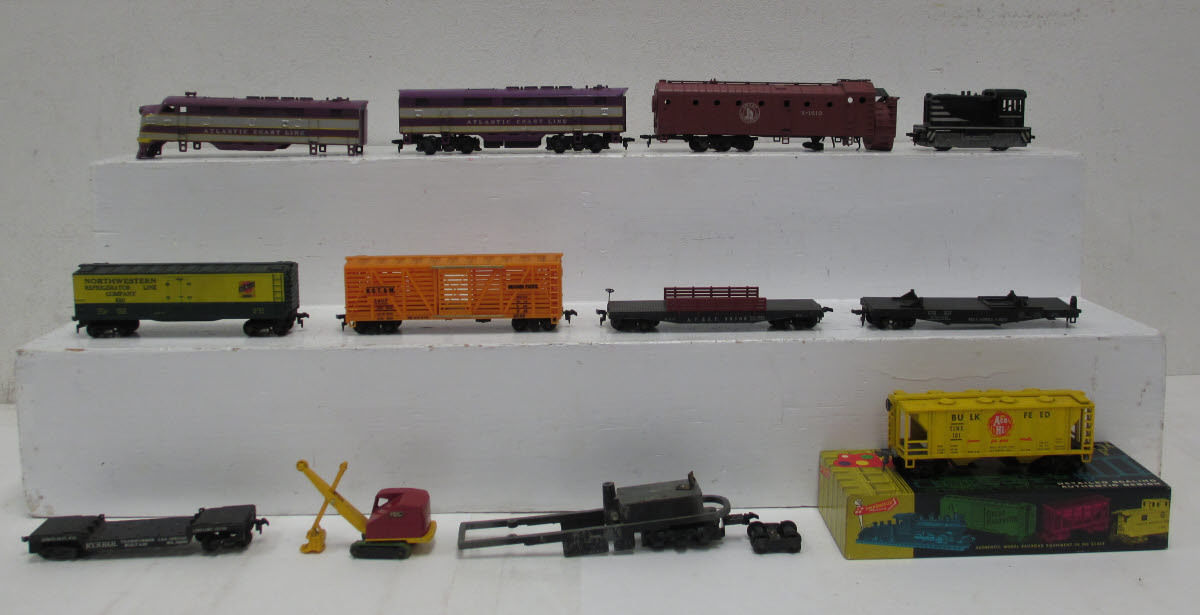 My accessories of the week are some Bowser trolley poles, I found two sets at a remote flea I visit occasionally, thought I'd snag them for a future Trolley pole install. I may have enough to do do two parallel tracks now. 12 per box. Or 10, I forget. Anyway, need the flashing cleaned off, but otherwise they look in decent shape.
