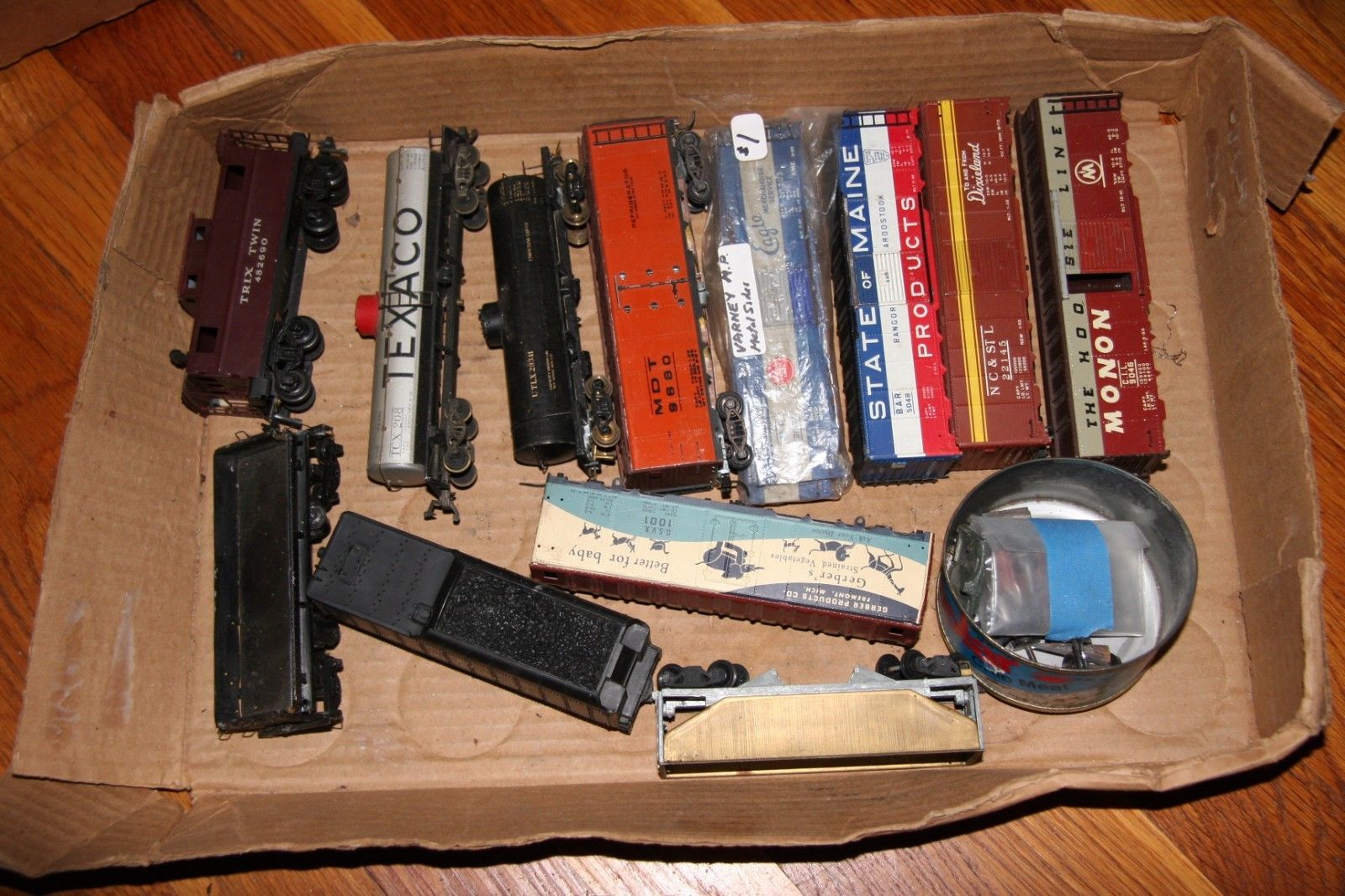 Nice old stuff. A Trix Twin caboose. A old name. The Texaco tank is Internetional, it is old it is big it has paper sides IMP couplers. Those colorfull cars, that look new, but aren't, are they all old metal Varneys. The real old ones had wood floors, The not so old had die cast floors. The newest ones plastic floors. Good find Frank