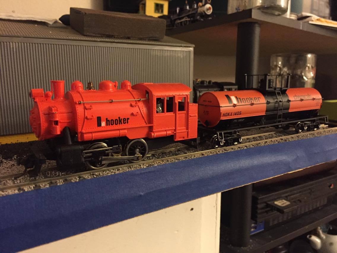 One of the rarest Mantua's out there.......least as far as their 70s-90s production goes. This one was a one year only (1981) release. And after years of searching finally found one. Hooker Chemical 0-4-0T Booster seen with my new athearn hooker chemical tank car.