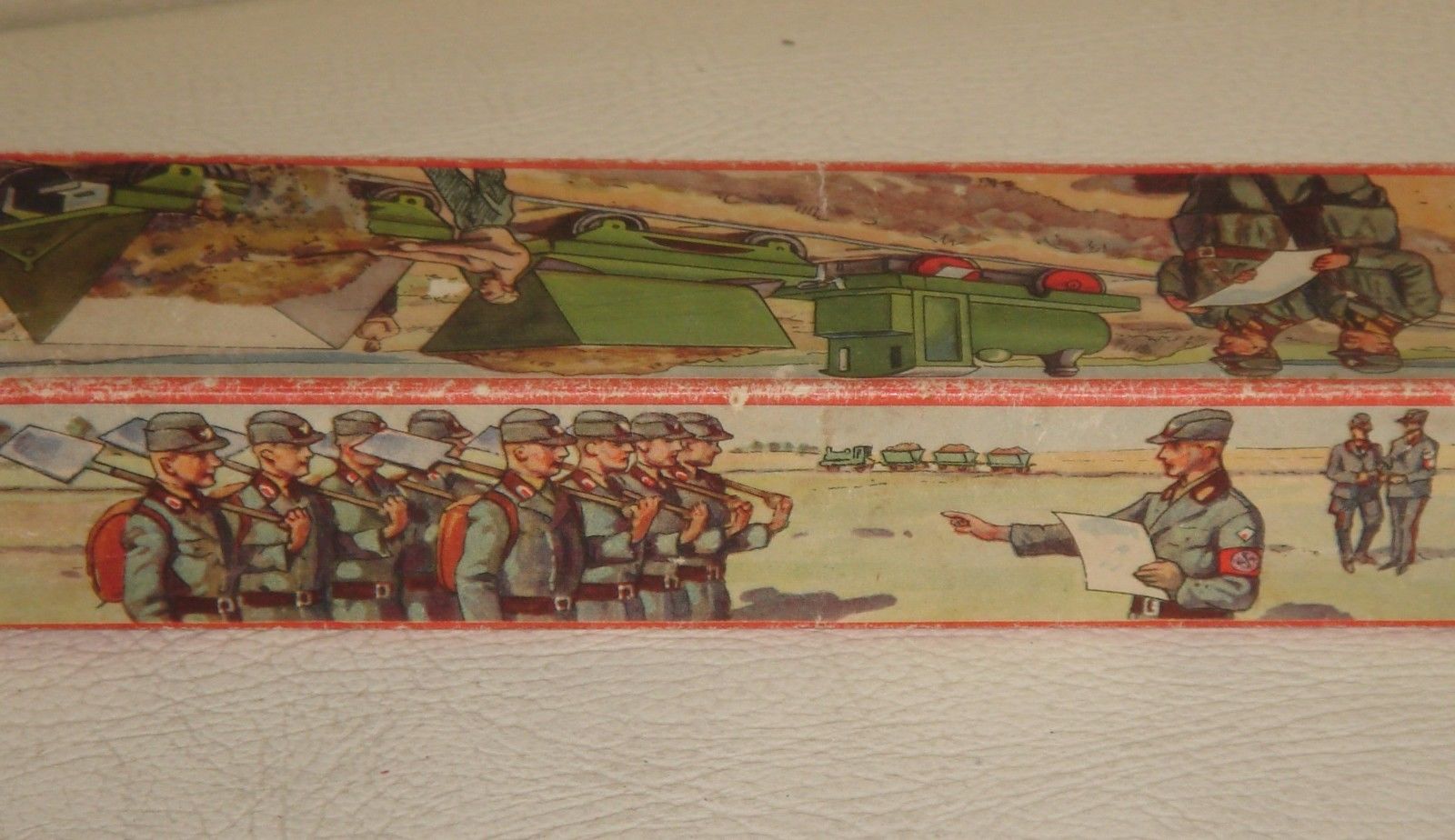 That is a most fascinating piece. Yes, the laborers are a little too fit to be half starved victims of the Reich, and one of them is quite blond. Still, the dominant appearance of the officers and the soldiers with guns makes a pretty broad hint, or perhaps I'm just reading too much into it. Still, an astonishing piece of a terrible past, and that it was designed for children, to guide their perception of the world, is chilling.