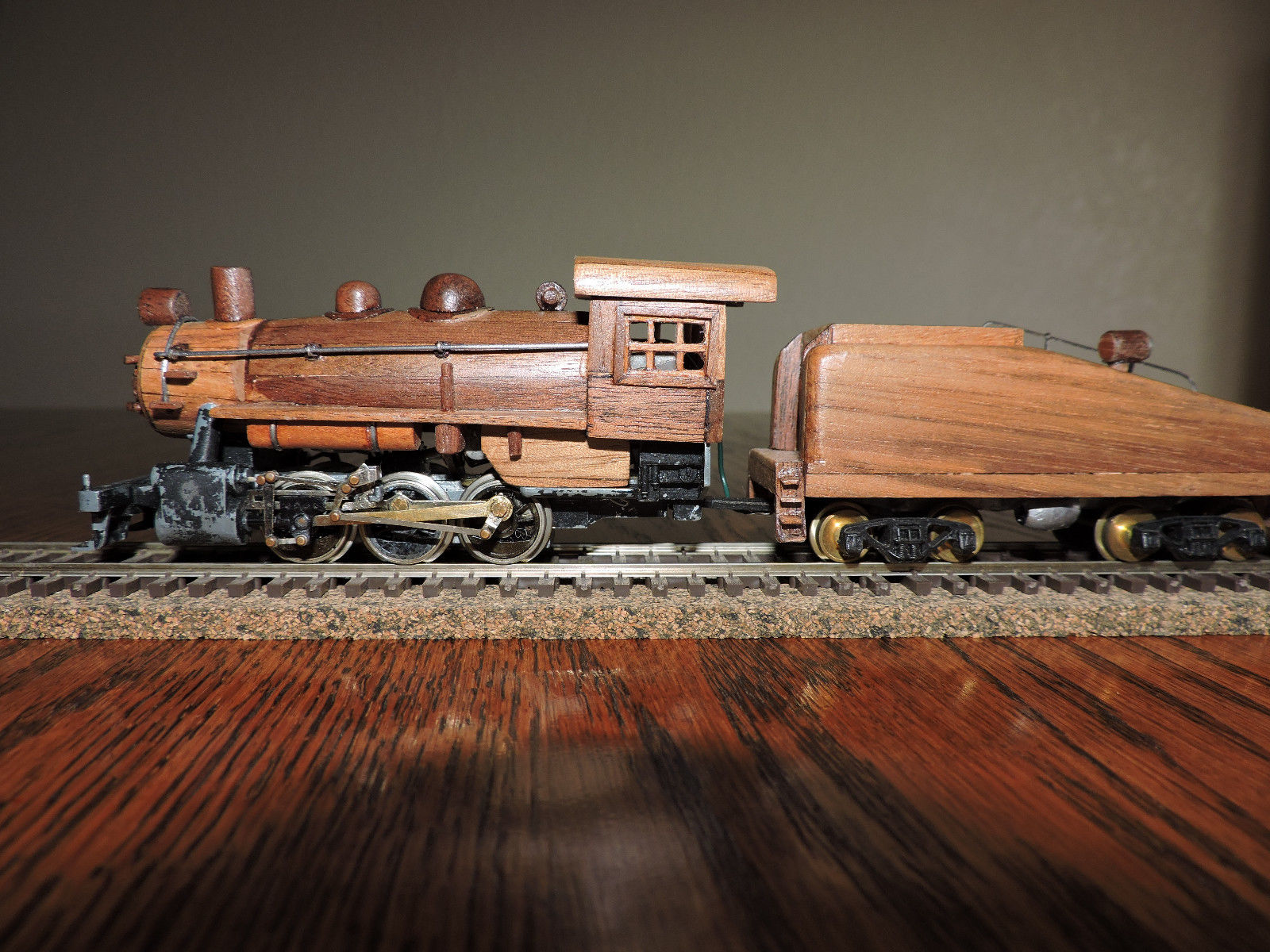 On one hand, that's beautiful and must've taken an incredible amount of time and patience, on the other hand... why make an HO train out of hand-cut and carved hardwood? That has to be the most onerous possible way of building something like this.