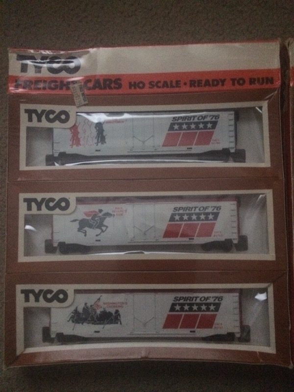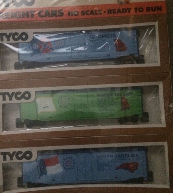 The state car set is also very common. Tyco made like 10 different state cars. Mint they are $20-$30. Both are super cool but pretty common. Now if you want to talk rare boxcars... There are some recalled Spirit of 76 boxcars that go for a ton of money when they are found NIB. The whole set sold separately a few weeks ago for around $150.