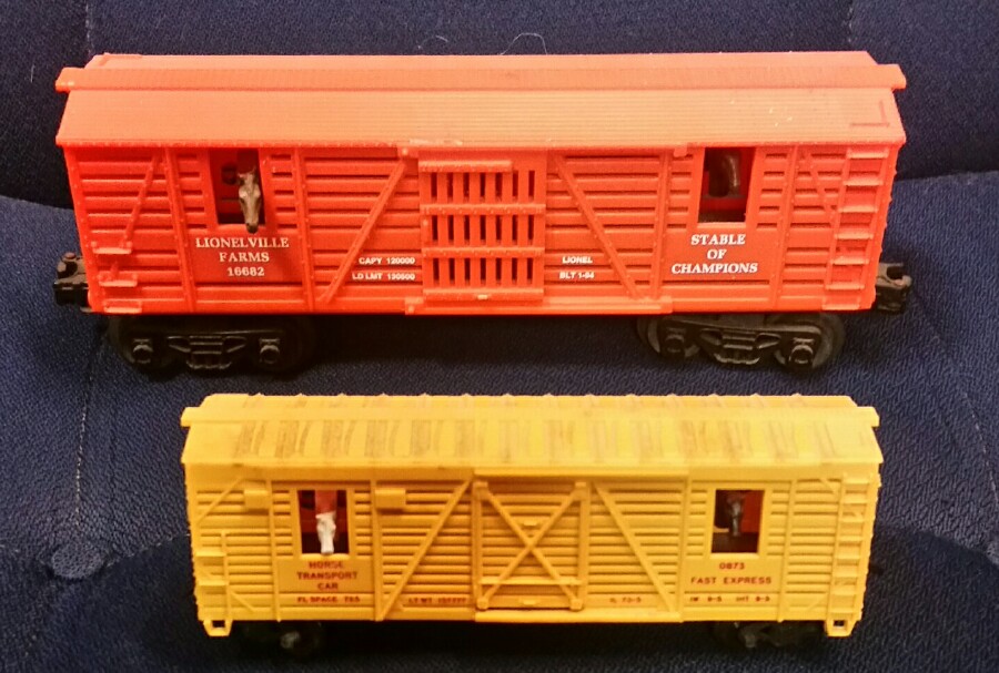 Forgot I had both of these, one was at work in a display case, the other I picked up a few years ago at a cool antique stop. Both are Lionel, HO and O gauge cars.