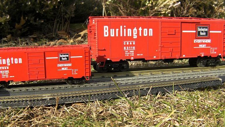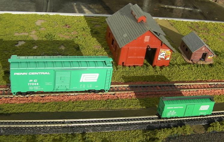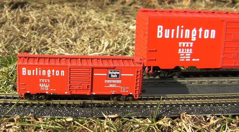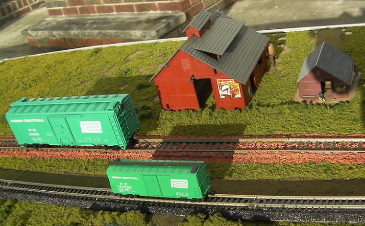 Atlas N scale boxcar with Roundhouse HO scale boxcar.