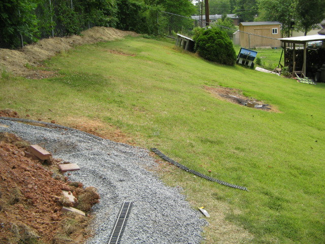 That's one heck of a slope in your yard! Isn't that ditch going to be a constant pain in the butt to maintain?