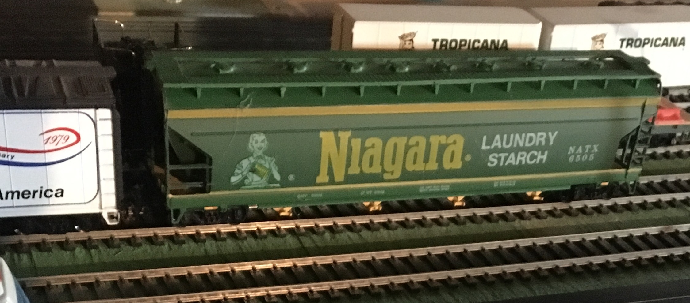 Love that Niagra. The little guy with the detergent canister looks ike a bartender shaking a vodka martini. He has kind of a creepy look about him. Never seen that one. Same for that Tyco flat with the girder. Just when I thought I'd seen every variation of Tyco, new ones pop up. Had some phun with these autoloaders. A satire on the American Love Affair with the automobile at the link below. "Hooptie," BTW is urban slang for "car."