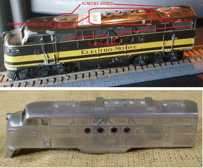 Got this interesting F today. Diecast shell that looks to be a FT or F2. Sitting on a Athearn blue box F chassis. Who made the shell? Very thick and heavy. No nothing on it says who.