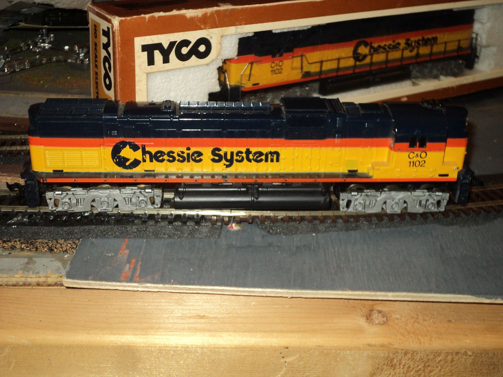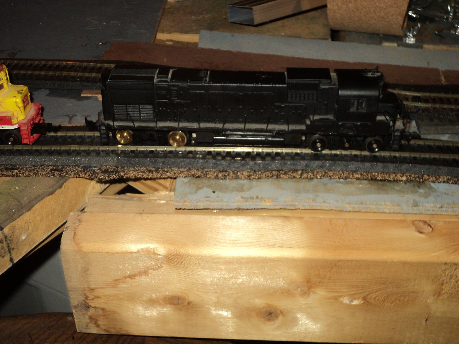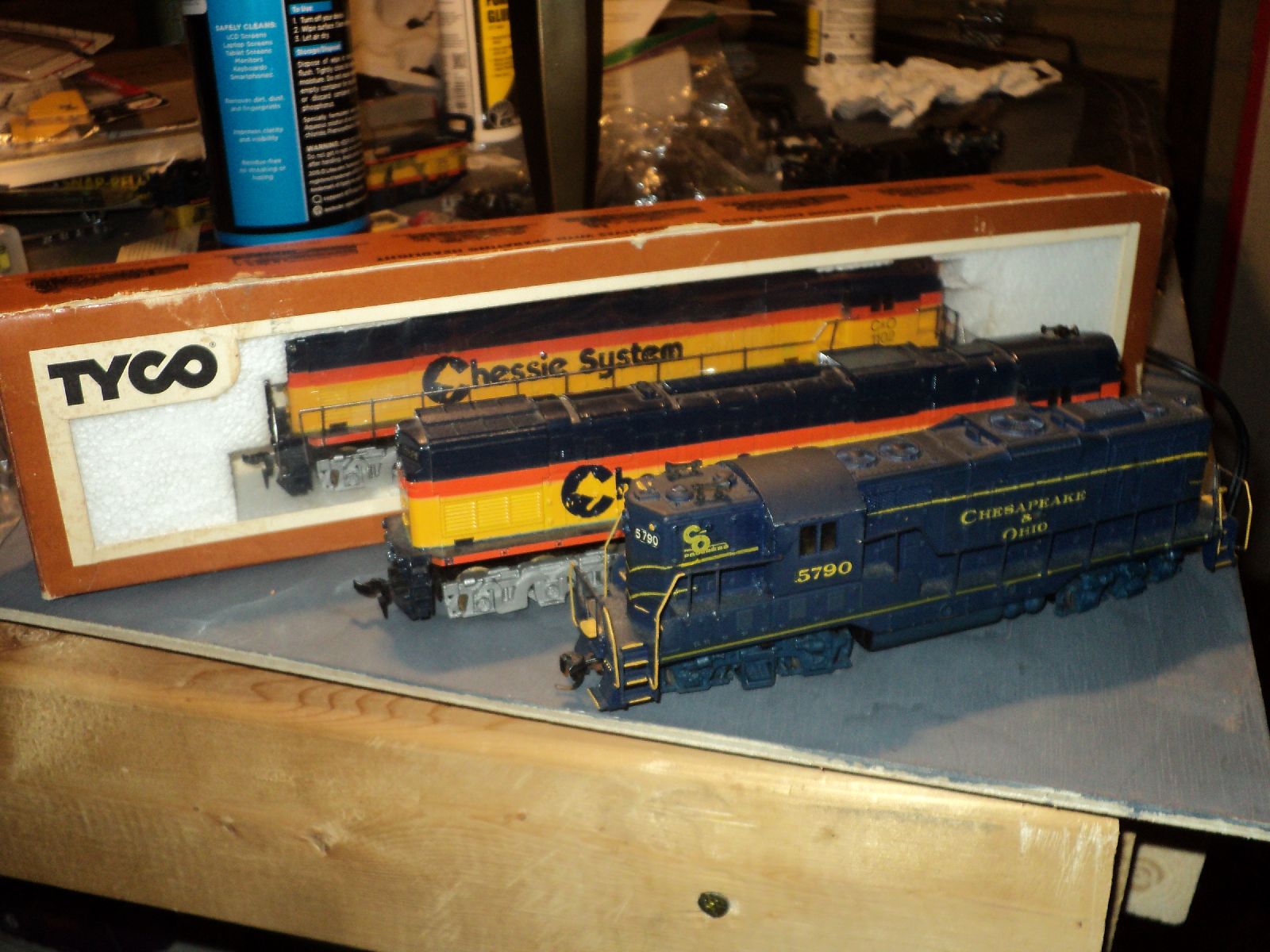 Heres another old geep which is a keeper,I painted this about 7 or eight years ago and she has set in a box ever since I just serviced her ,new traction tires and she just jumps down the tracks a very strong runner which is a good thing because I was fooling around this week with my one good loco an atlas uboat and ran it off the track thus busting a coupler and now its running erratic.Guess thats not what they meant when they were talking about breaking in your trains lol this alco was in a box of other locos and I got here for 5 bucks cleaned and serviced it and she flat out hauls Hres all three that i scored at at a train show I went to last sunday first show ive been to in five years.the boxed one doesnt run it just lights up so thats a project for this weekend and i gotta athearn geep it runs but sputters badly and sparked some so its gotta come apart but I got all three for what some jokers on ebay sell one locomotive for