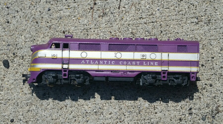Picking an oldie but a goodie, needs a hollow round tube driveshaft to get'er going again, this old Varney ACL diesel is another shop find. Been trying to find some nice purple ACL shells to build a passenger train puller, this one will work nicely.