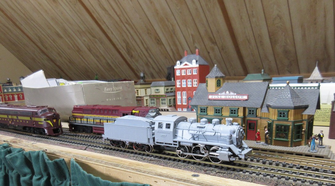 This weeks loco from me is a Fleischmann 0-6-0 switcher. This one was made for entry level train sets. Like with Fleischmann in general they hold up, and keep running. This has marks of being dropped and played with hard. I painted it as a Army Transportation department war trophy. It is painted in war camouflage light gray. Meant to blend in with snow. I call it the Ghost locomotive. frank