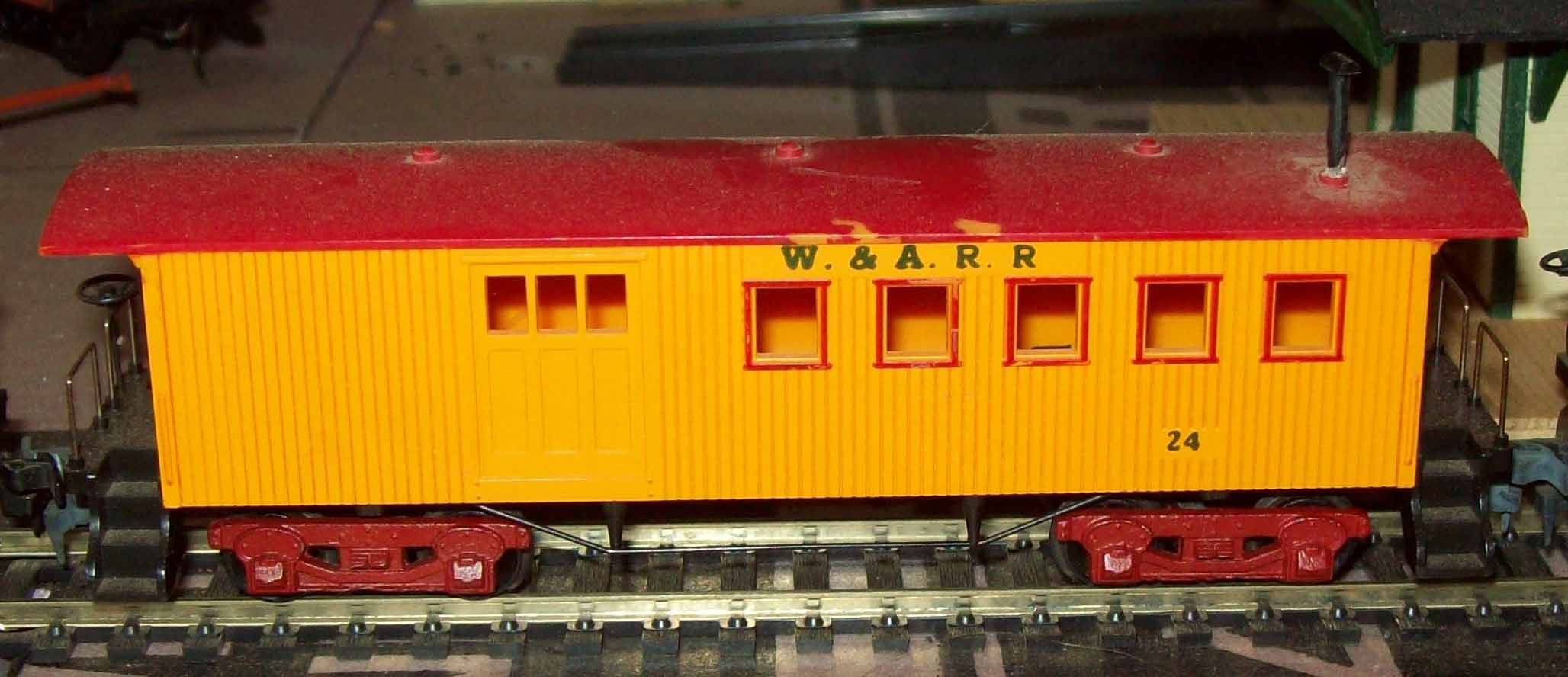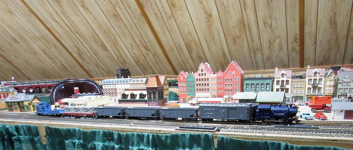 I'll do two sets this week. Here is my US Navy set. The 2 flat cats have been dropped off somewhere and a new work caboose can be seen at the rear of the train with the new Navy crates on a flat car. frank