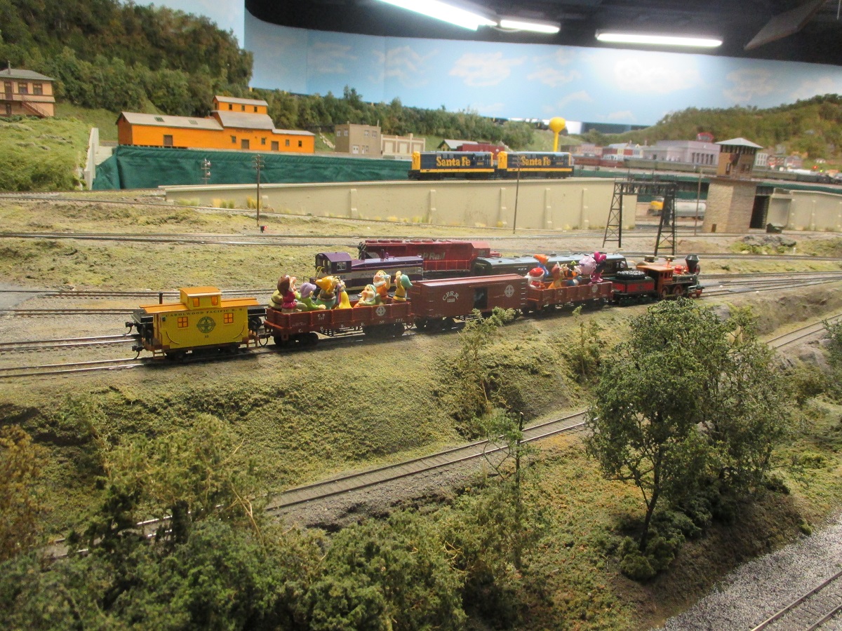 Memories from one of my last visits to the New York Society of Model Engineers layout a special train set need to be seen again. A photo of a special fan trip around their layout. The train is carrying many well known railroad-loving fans. Sitting in those open gondola cars. Open to the winds. These railfans uncomplaining sit through the long trip around the layout. I wish I had a clearer photo. To make recognizing these important individuals. frank