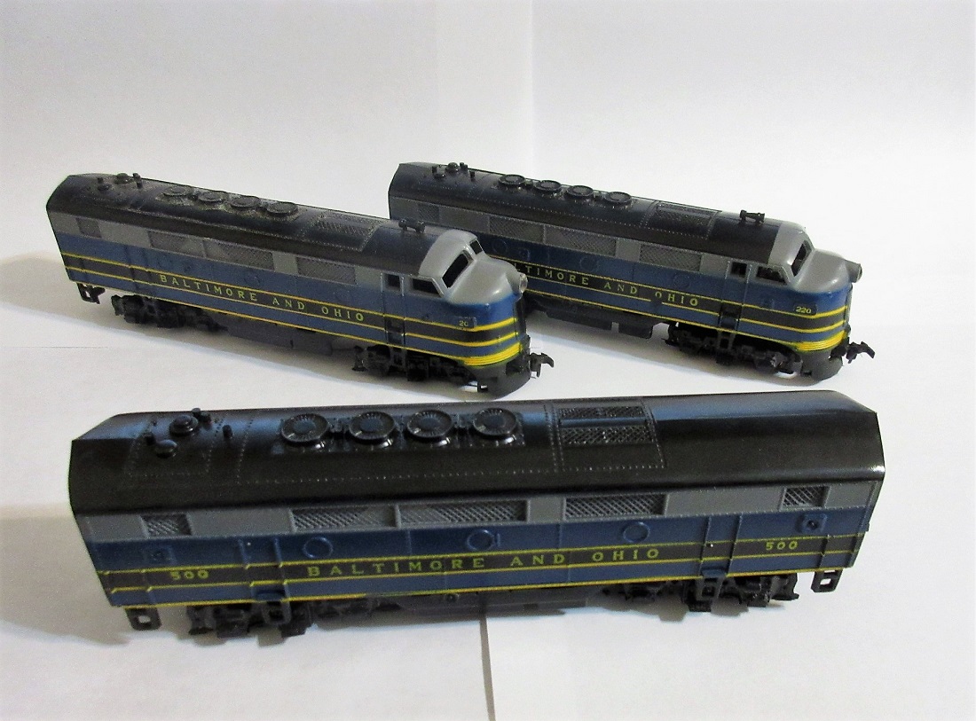 Here's a short Lionel HO passenger set I picked up at a train show yesterday. The FA is belt driven, all-wheel drive, and all-wheel pick-up. It needs rebuilding but everything is there and the motor turns. Both cars are in nice shape and dual-lighted.