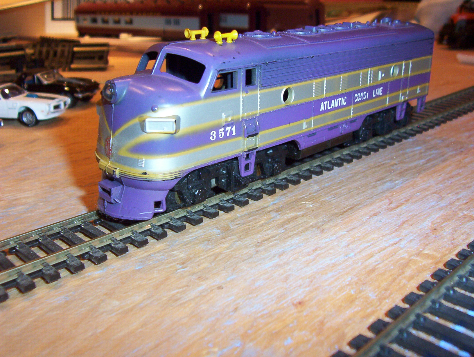 An archival photo of a Rivarossi Krauss Mauffei pulling its dedicated Dutch Maid consist. The gear box has since worn out and I am trying to figure out, with the help of AMC Gremlin, what will make sense to resurrect it.