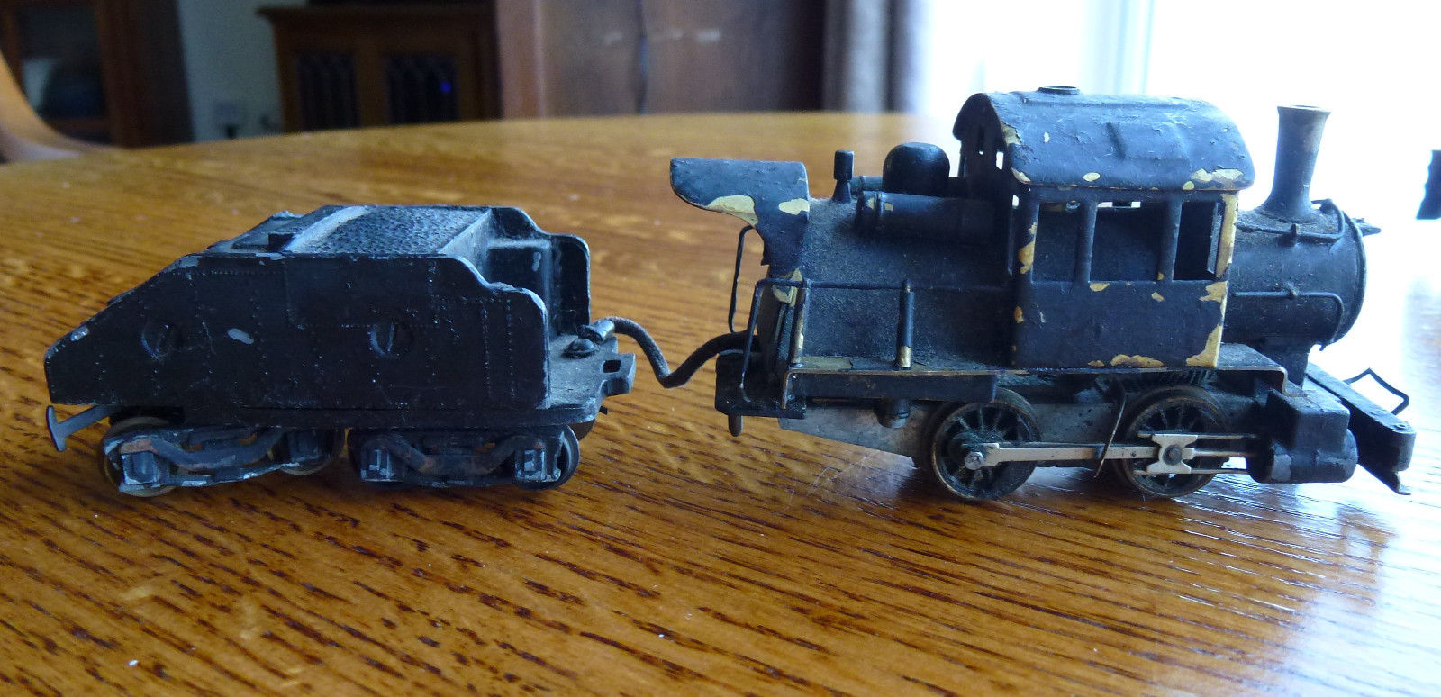 My LOTW contribution is a Mantua Roundhouse 0-4-0 Camelback Goat. I have since stripped the paint from this puppy. It looks to me to possibly be an early pre-war model based on the truck side-frames and the tender shell.