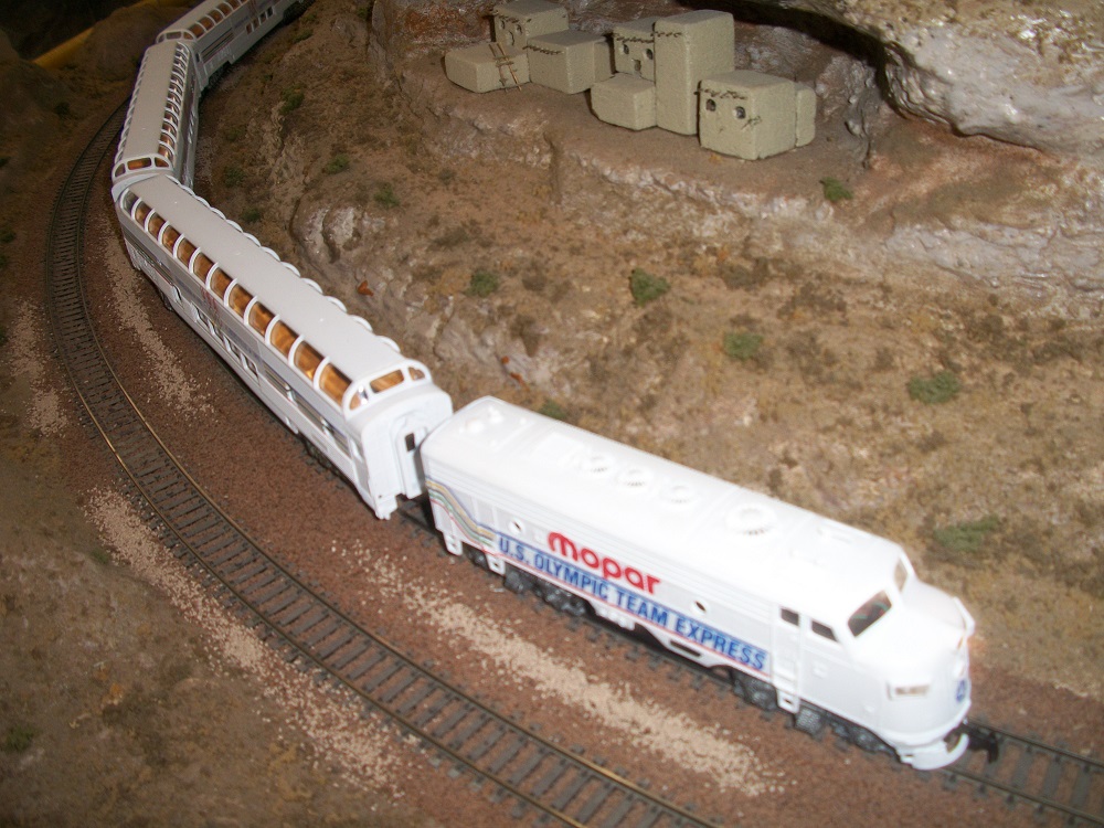 My camera/phone is not uploading to computer (which may be a relief to some), something about not "locating pictures and videos." So, I had to delve, yet again, into the Chopchives and pull out this thread bear photo of a Bachmann Olympic Winter Games Commerative Set- I think maybe 1987ish. Seen here at a train show of the El Paso Model Train Club module display, owner and engineer: the talented Jose Enrique.
