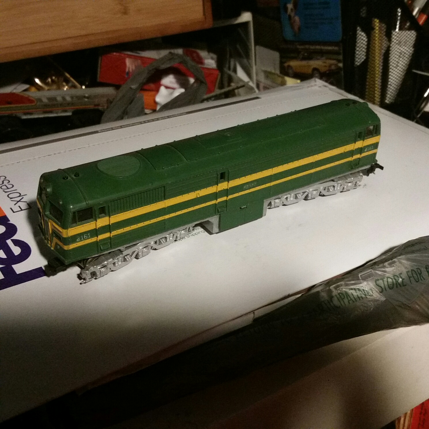 My LOTW is a hybrid. I haven't found out much about it yet. It's an HO scale Renfe diesel. When I searched on it, I found mostly N gauge versions. Same number 2161, same color, but all mostly in N gauge. This particular engine is just the original shell, someone put it on an Athearn Chassis, probably a PA-1 A unit. fits OK, but rides high. At any rate, will either modify a chassis to fit the body, or try to find a chassis for this engine. I like the looks of it, came out of my train shop a few yars ago, I just uncovered it recently while sorting through my train inventory in the basement.