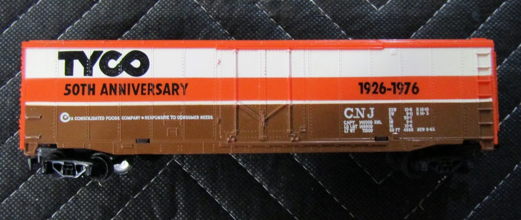 A recent addition to the rolling stock collection, Tyco's 50th Anniversary (1926-1976) box car.