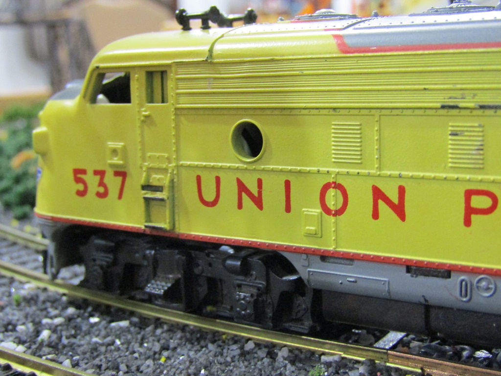 Union Pacific F9 A-B-A set Here's a video of UP A-A F9's #537 and #538, working together on the Ephrata Valley Railroad: https://vimeo.com/245533088