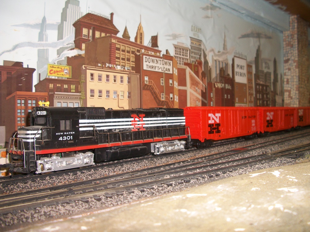 A Tyco-Mantua with Tyco box cars. This old gem was lifted off the junk pile and a little cleaning the old MU2 motor came right back to life. From the Archives del Chops.