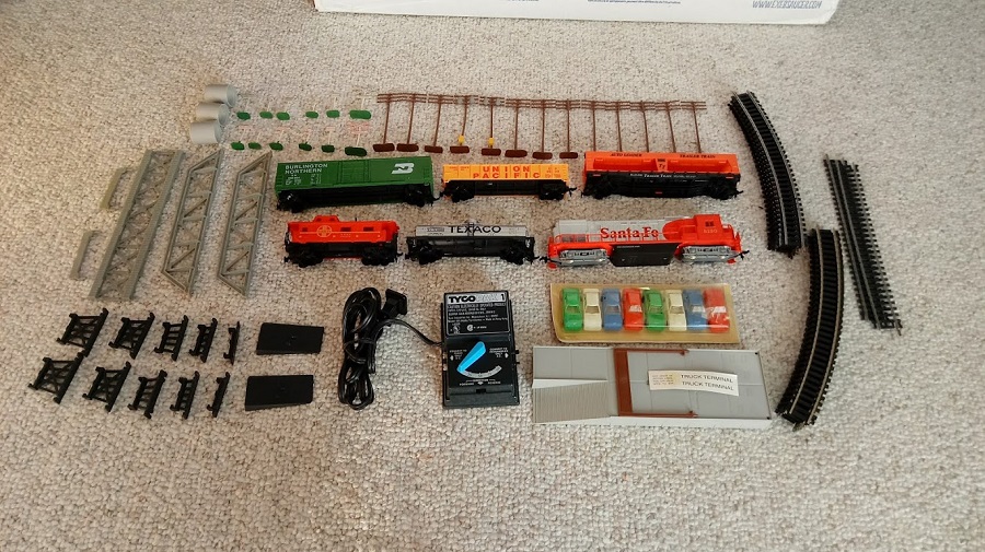Picked up this set yesterday. From the late 80's when Mehano was producing trains for TYCO. 99% complete, doesn't look like it was ever run. All the signs and trestles are there. I don't plan on keeping it.