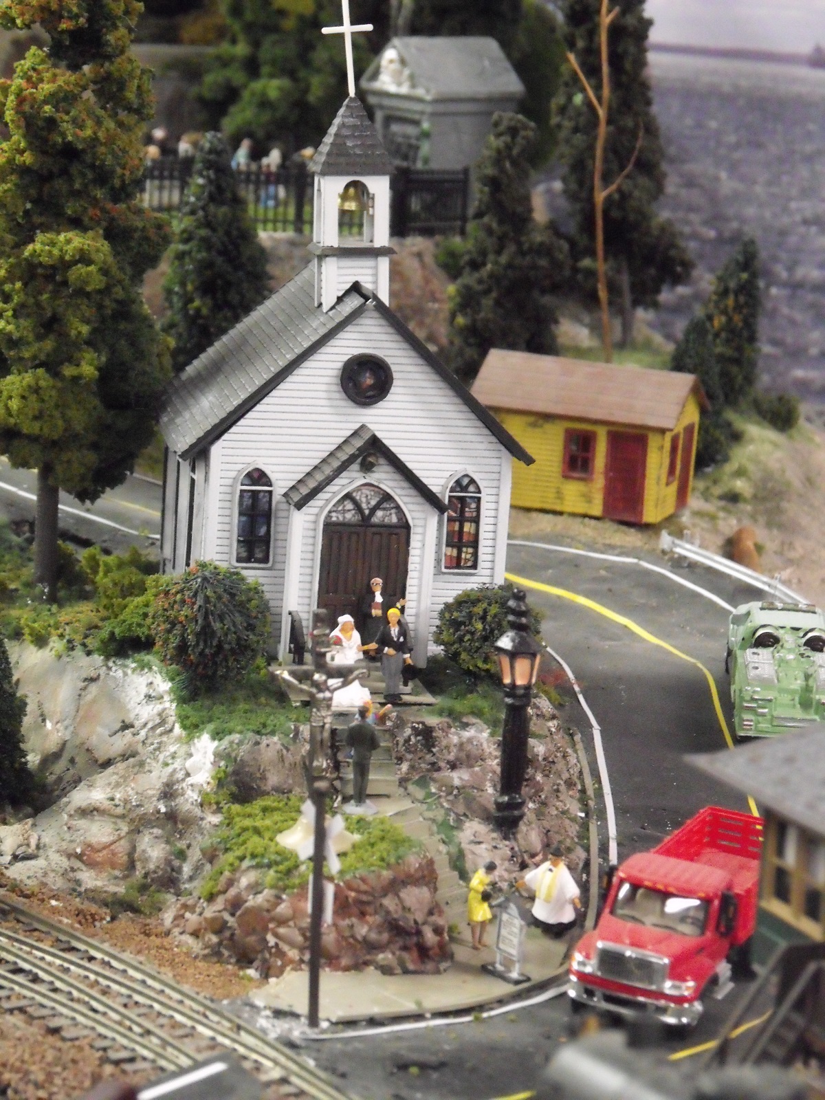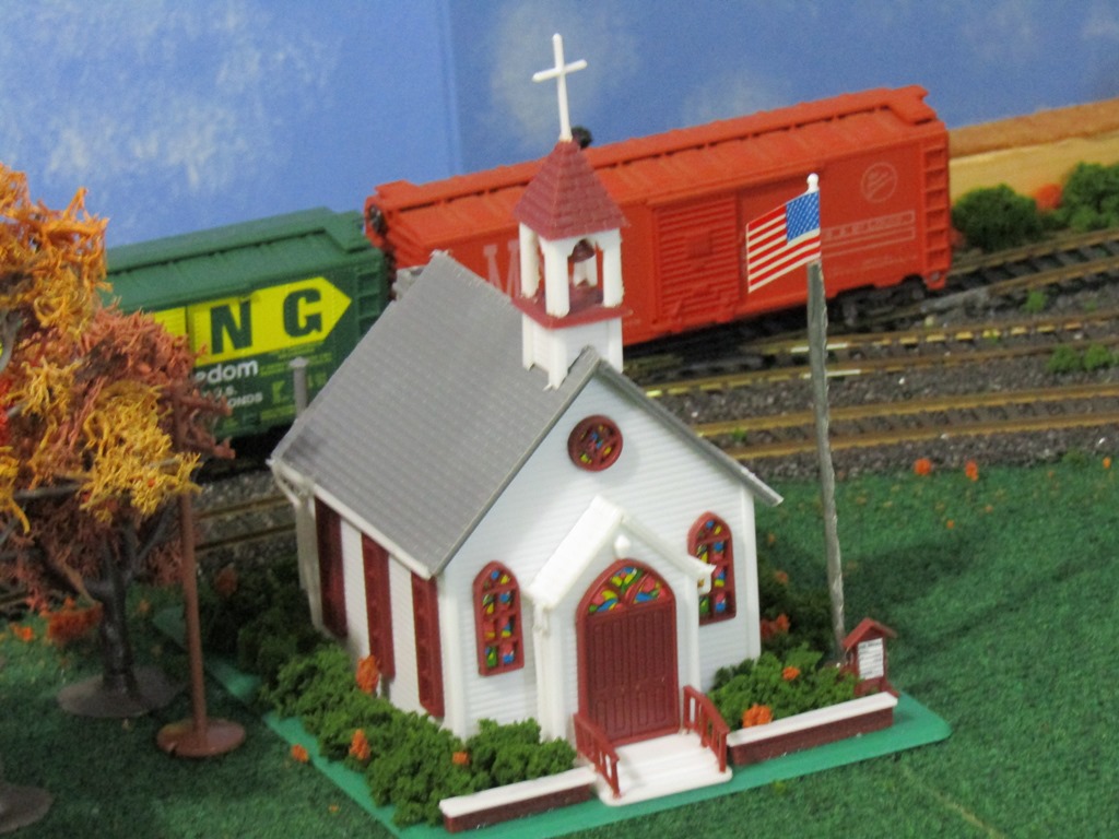 Keeping the same theme, here is a photo of the church on the Ephrata Valley Railroad, known as the Good Shepherd Church. Note: this photo was taken as my layout was starting to shape-up....scenery has improved since then.