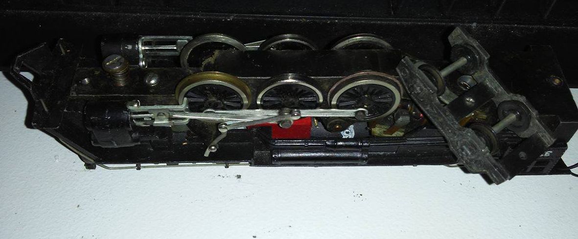 This one has the early pre-WWII tender. This can be seen by the steel sheet metal used in the truck construction and the round water hatch on the top of the tender. The chassis of the locomotive appears to be diecast and not brass like most pre-war moguls I've seen.