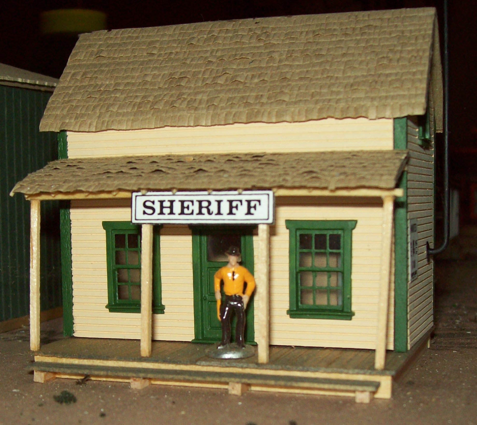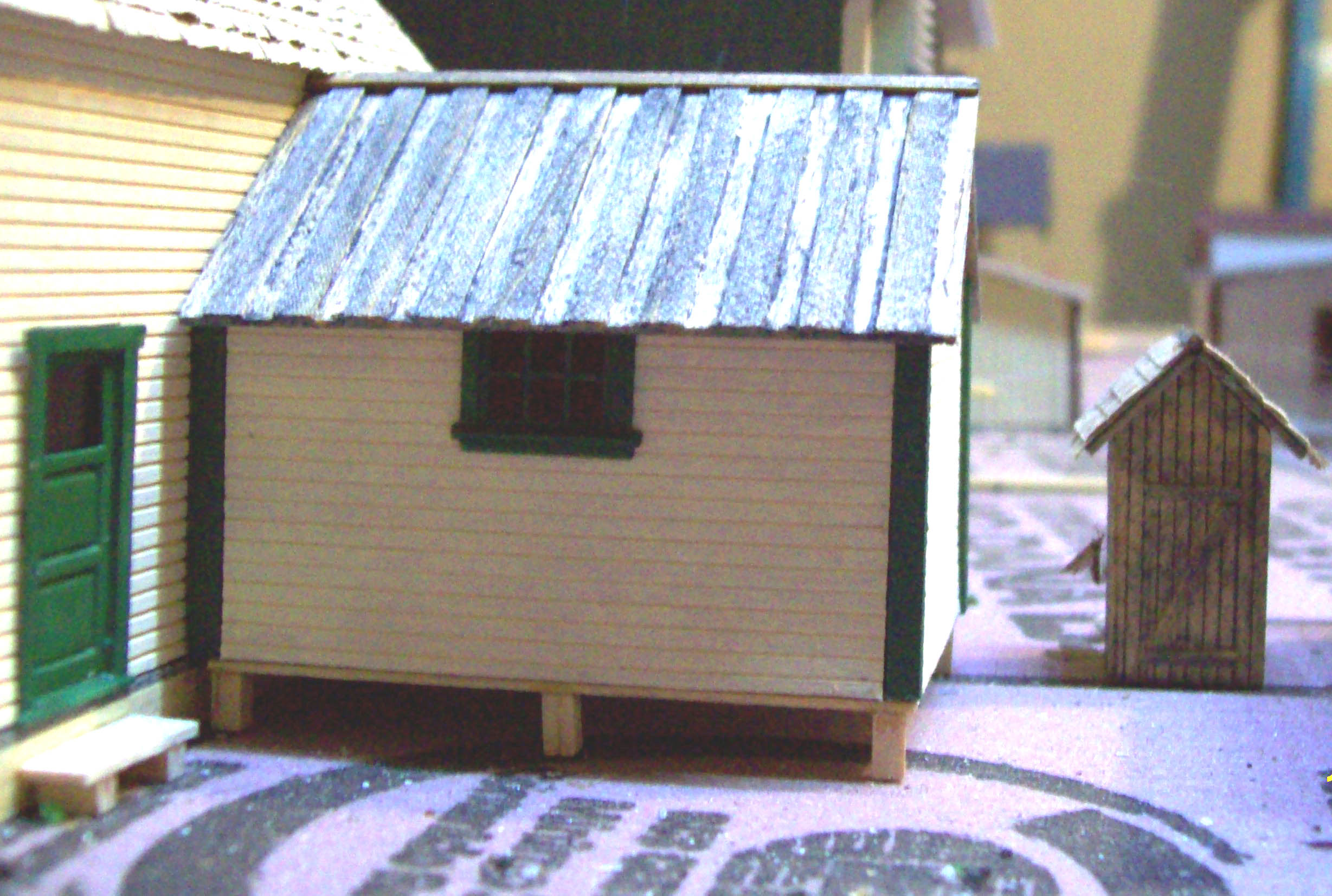 Found this "abandoned" garage in a big box at the train show, wound up buying the entire box for $15. Lots of good stuff in there! Hope to find the roof for this garage, or I'll build my own. At any rate, maybe a "Texas Special". Oops . ie, hurricane dmage.