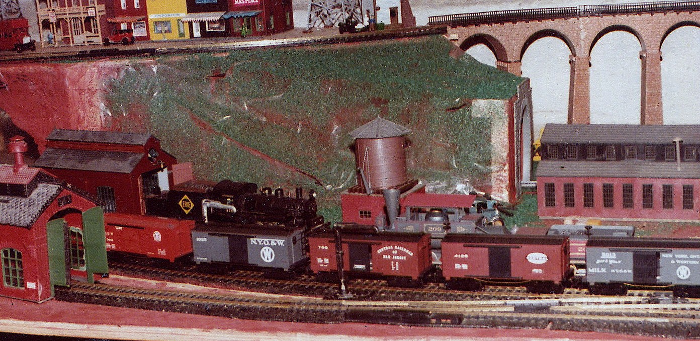 A pair of Airfix short engine houses made up an old engine maintenance area on an old layout. frank