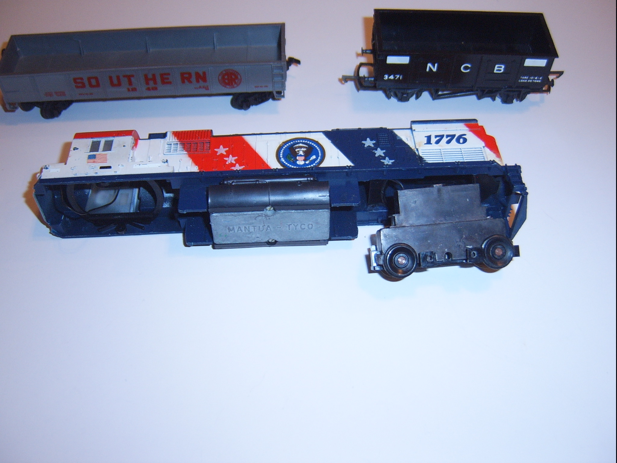 Southern Hopper-Bachmann-missing wheels. NCB hopper-made in England. Spirit of 76 engine-missing one truck.